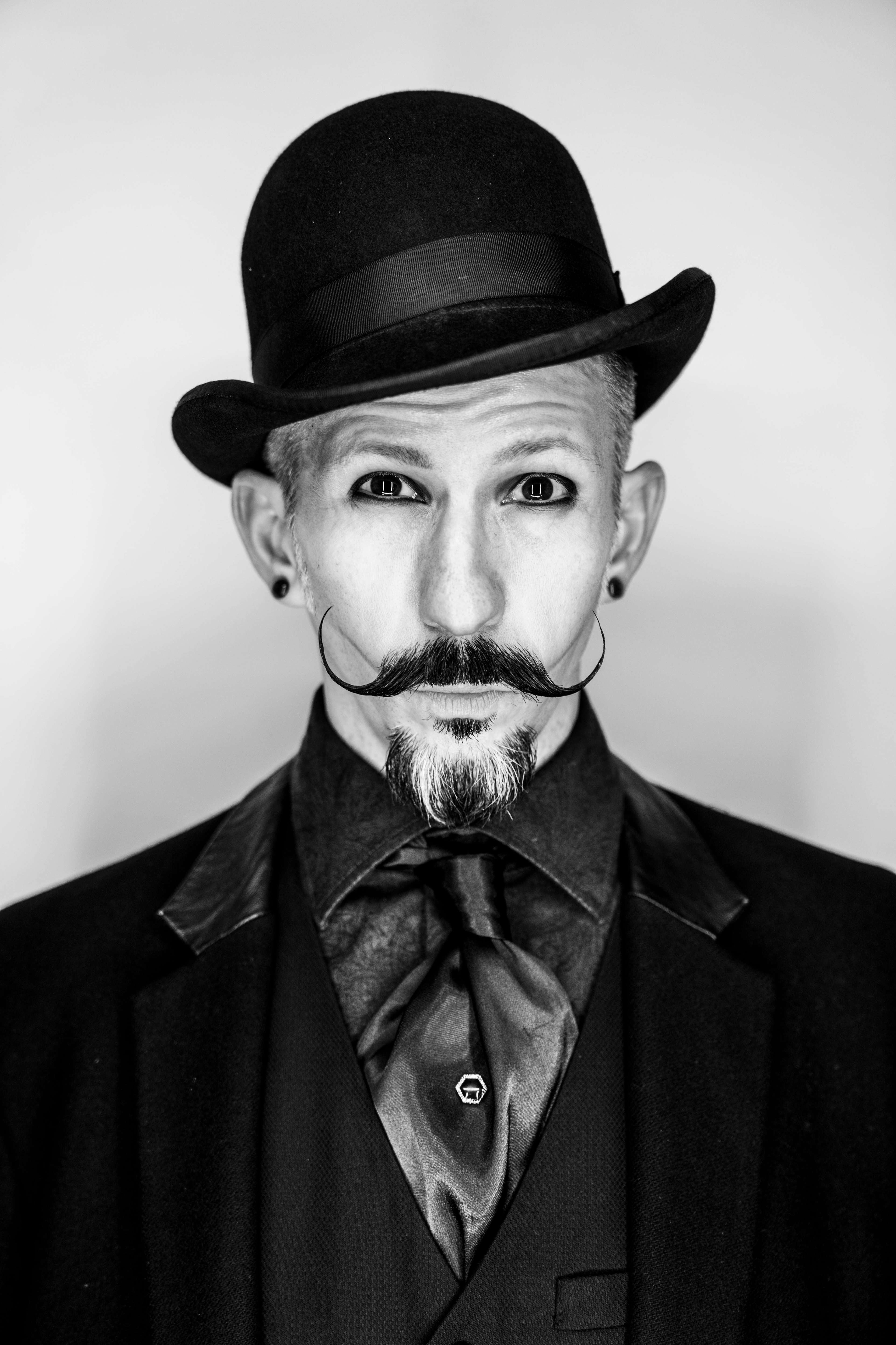 Natural Moustache: The moustache as it naturally grows, the more natural the better. No closed curls. Only those hairs growing from within 5/8” (1.5 cm) past the end of the upper lip may be grown out. The moustache may be shaped but without aids. No styling aids allowed.